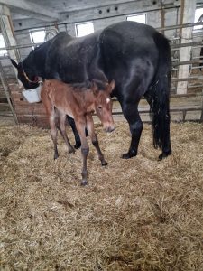 Am 14.04.2026 (23.45 Uhr) hat die Trägerstute Etincelle Flamme ein Hengstfohlen von unserer Stute PAULA HMK und vom Hengst TOULON geboren.